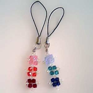 スワロフスキーを3色使った、飾り部分5cmのスクエア・ストラップです。